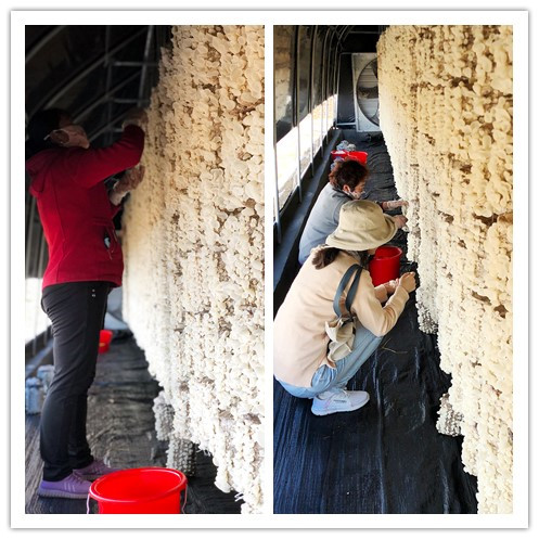 煙臺(tái)棲霞市亭口鎮(zhèn)衣家村山腰間的培育大棚里,一排排一行行玉木耳形如盤狀、晶瑩剔透、如玉似脂。連日來,大棚里人頭攢動(dòng),笑語盈盈,村民們滿懷喜悅采摘玉木耳,好不熱鬧。分裝車間里也是燈火通明,如火如荼,一派繁忙景象,村民熟練地打包、裝箱,近50萬斤玉木耳正通過線上電商、線下商超一箱箱送往全國各地。