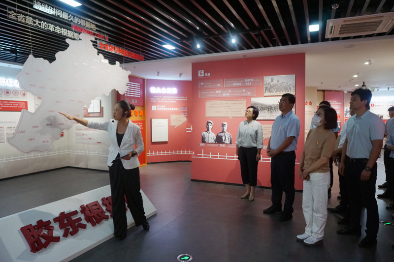 在膠東根據(jù)地工運陳列館,大家參觀學(xué)習(xí)了“英雄的膠東和膠東工人”“兵工奇跡”“眾志成城”“翻身解放”“時代傳承”五大展區(qū),認真觀摩重要歷史照片、文物以及視頻資料,了解了膠東工人為創(chuàng)建膠東根據(jù)地所建立的豐功偉績。