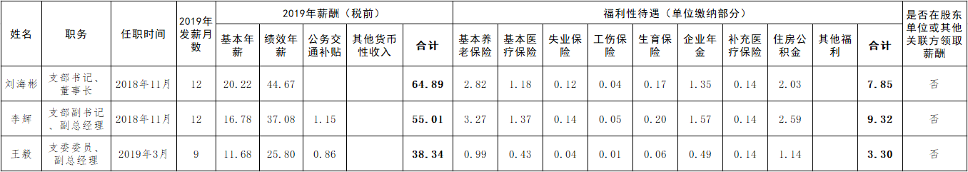 煙臺(tái)財(cái)金集團(tuán)負(fù)責(zé)人2019年薪酬披露信息表(單位:萬元)
