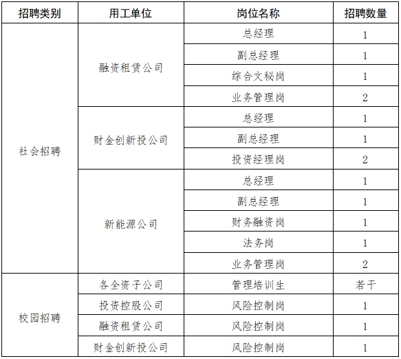 按照集團(tuán)實(shí)際用工需要,決定通過(guò)校園招聘和社會(huì)招聘,公開招聘各崗位人才數(shù)名,具體事項(xiàng)公告如下: